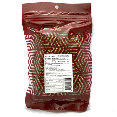 Propiedades de Madreselva: antibacteriana, antiinflamatoria, es usada para disipar calor y eliminar toxinar. Ayuda al tratamiento de fiebre, gripe úlceras. Se consume en forma de tisana, añadir agua caliente a una cucharada de Jin Yin Hua, esperar 5-10 minutos y listo para consumir.