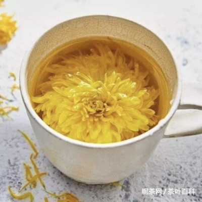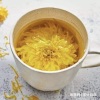 Preparación del té de crisantemo: Añadir agua caliente en una taza o tetera con flores de crisantemo, azúcar de roca y bayas de goji, se deja reposar 10 minutos y listo para consumir. Este té es ligeramente dulce y con un aroma florar muy especial, es beneficioso para recuperarse de la gripe, prevenirse la faringitis y fiebre.