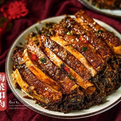 Mei Gan Cai es un tipo de verdura desecada capaz de almacenar tiempo muy largo, ingrediente típico de la cocina china. Antes de usarse hay que dejar en remojo para que se reblandece. Se suele cocinar con carne de cerdo, Mei Cai Kou Rou es un plato muy famoso de China.