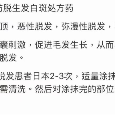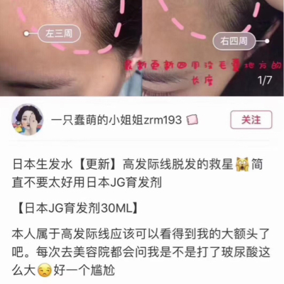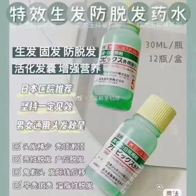 💞日本人脱发严重,所以有绝招。JG处方生发剂主治:防止脱发、毛发促进、秃顶、谢顶、以及恶性脱毛症、身体一切 脱毛引发的症状促使毛发生长,同时 对于 干性脂漏 和 寻常性白斑 也有很好的作用。用法:对于脱发患者一日 2~3回 适量涂抹患处即可,无需清洗。然后 ,对于涂抹完的部位轻轻进行按摩,对于 白斑患者 一天 3~4回 轻轻按摩!三瓶一疗程