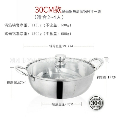 帮太太火锅 (鸳鸯锅 清汤锅)带锅盖Olla De Acero Para Hot pot Con Separador Soldado BTT