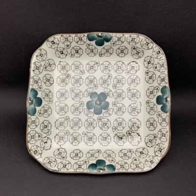 Plato Cuadrado Con Peonía 8.5"