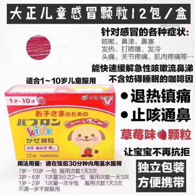 大正家的儿童感冒药,家有baby必备#这是专门为小朋友,设计的,草莓味!合适1-10岁的孩子日本对药品的检测可以说是相当相当的严格,效果非常好,专门给小孩子设计的草莓味道,一周岁以上可以!发现孩子有感冒的苗头,马上吃几包,只要不是很强烈的病毒性流感基本就能好了!这款是草莓味哦,小朋友不会排斥了