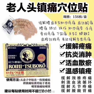 【日本🇯🇵】 大判老人头穴位贴膏药 温感贴!配一张人体穴位图图,会发热促进穴位血液循环,性价比很高,里面装有156片,可缓解 肩颈痛,腰痛,关节痛,肌肉痛,缓解疲劳,骨折痛,家庭必备~