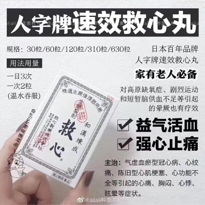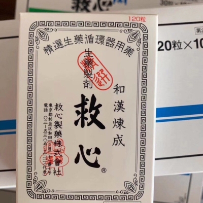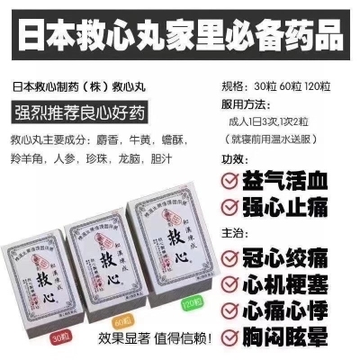 强烈推荐良心好药💥日本救心制药(株)救心丸/强心丹/救心剂麝香,牛黄,蟾酥,羚羊角,人参,珍珠,龙脑,胆汁)产地:日本内容量:粒服用方法:成人一天三次,一次两粒(不咀嚼早晚就寝前用温水或水送下)功效:益气活血、强心止痛。主治:气虚血瘀型冠心病、心绞痛、陈旧型心肌梗塞、心功能不全等引起的心痛、胸闷、心悸、眩晕等症状;另外,对高原缺氧症、剧烈运动和短暂脑供血不足英气的晕厥也有疗效!